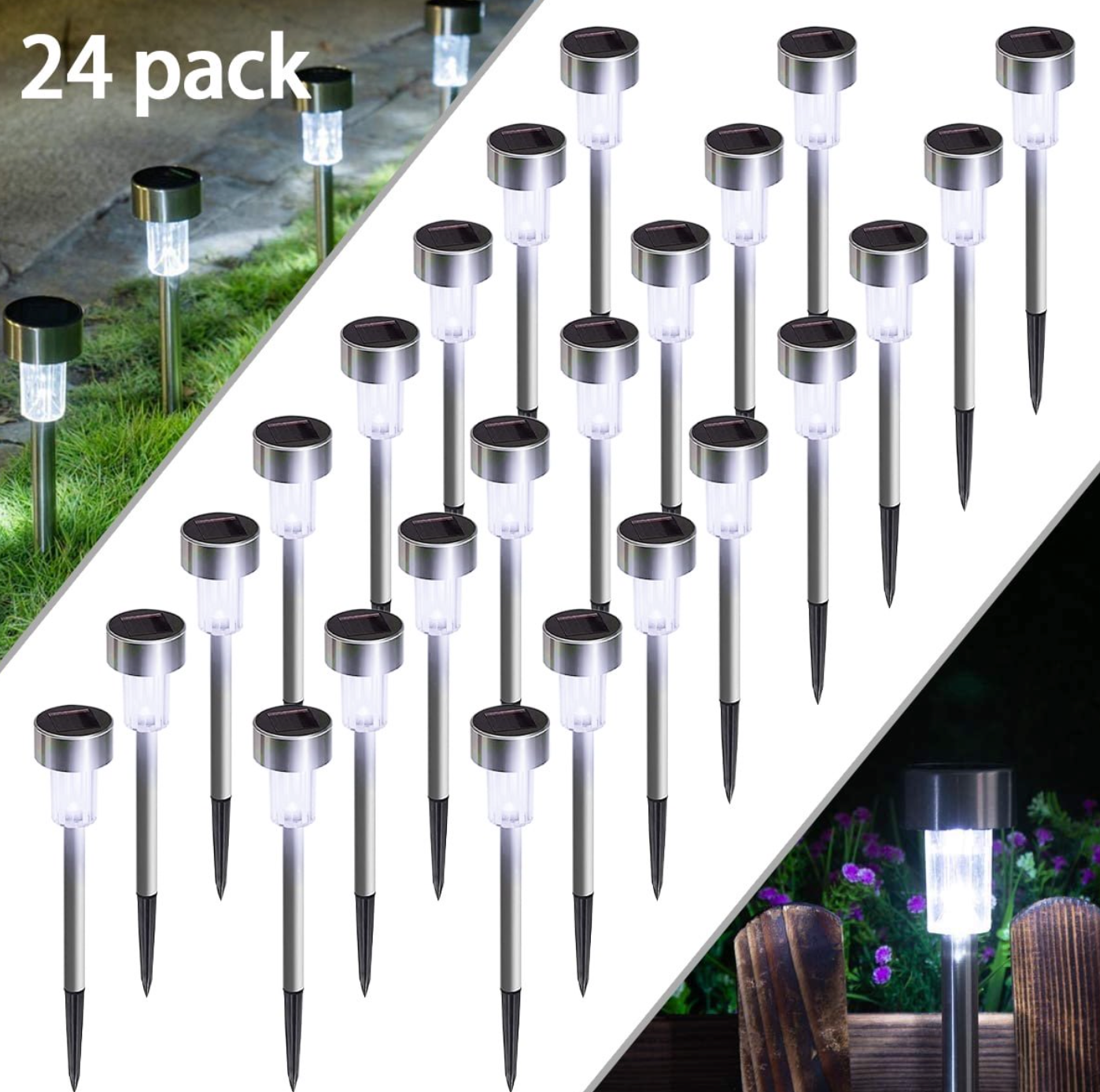 Qishi 24-Pack Solar Pathway Lights – Waterproof Stainless Steel LED Landscape Lighting for Yard, Patio & Walkway