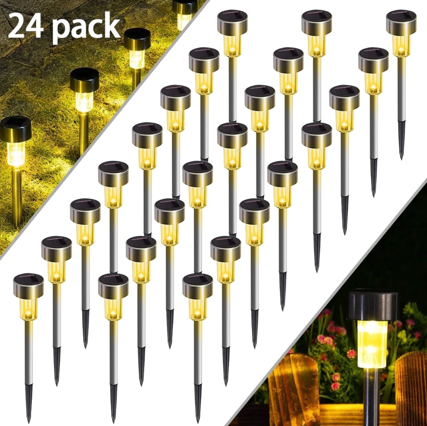 Qishi 24-Pack Waterproof Solar Lights – Stainless Steel LED Pathway Lights for Yard & Patio