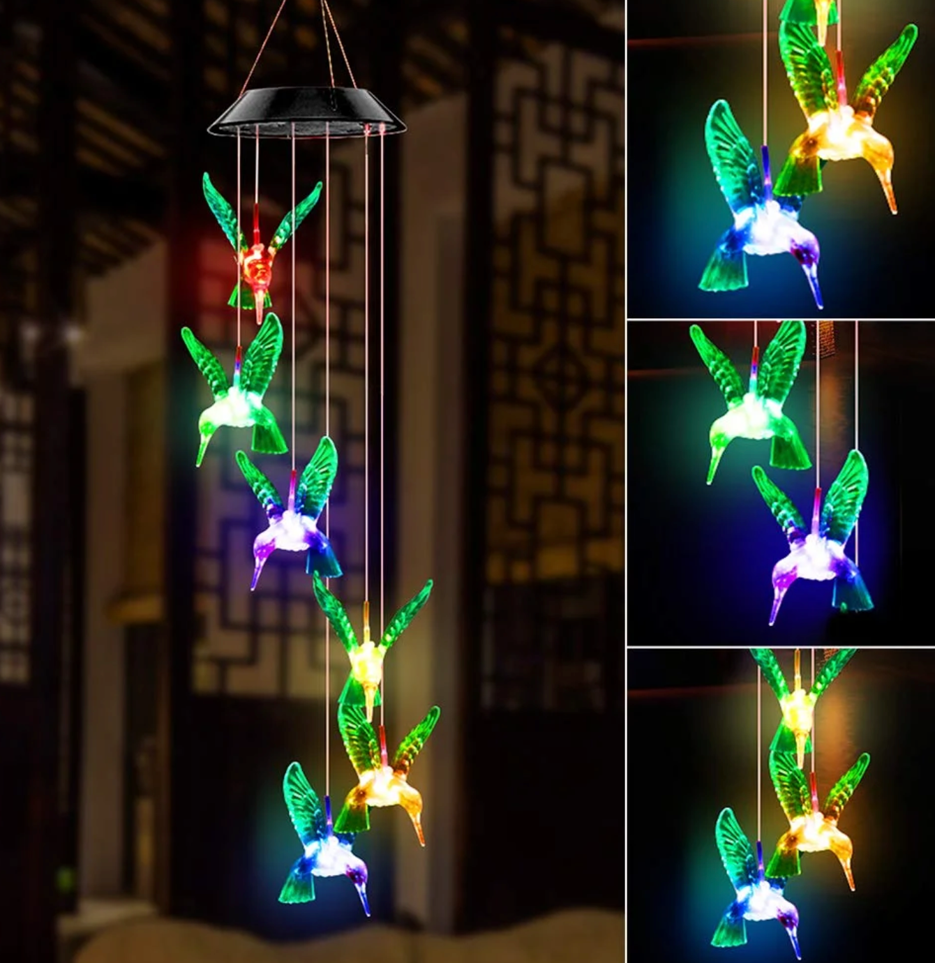 QiShi Solar Wind Chimes,Color Changing Hummingbird/Crystal Solar Lights,Decoration for Lawn,Patio,Yard,Garden,Bedroom,Outdoor